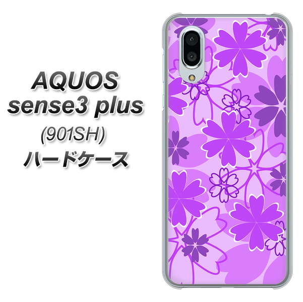 SoftBank アクオスセンス3 プラス 901SH 高画質仕上げ 背面印刷 ハードケース【VA960 重なり合う花 パープル】