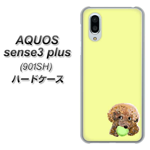 SoftBank アクオスセンス3 プラス 901SH 高画質仕上げ 背面印刷 ハードケース【YJ056 トイプードル&ボール(イエロー)】