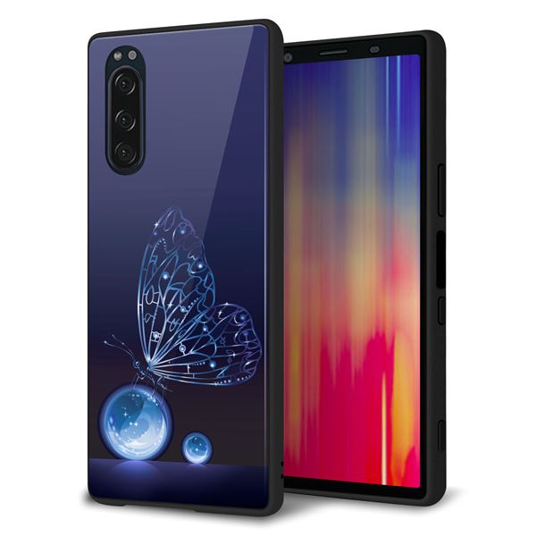 softbank エクスペリア5 901SO 強化ガラス&TPUスマホケース ガラプリ【418 神秘の蝶】