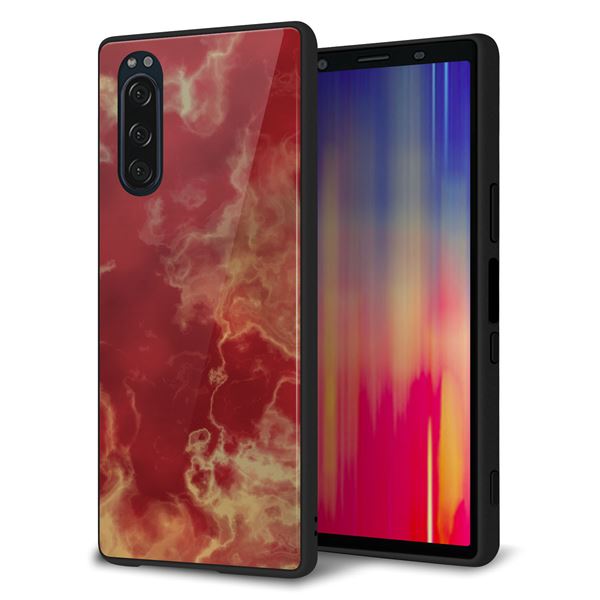 softbank エクスペリア5 901SO 強化ガラス&TPUスマホケース ガラプリ【KM870 大理石RD】