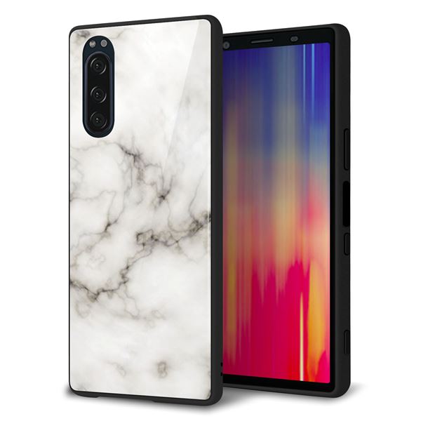 softbank エクスペリア5 901SO 強化ガラス&TPUスマホケース ガラプリ【KM871 大理石WH】