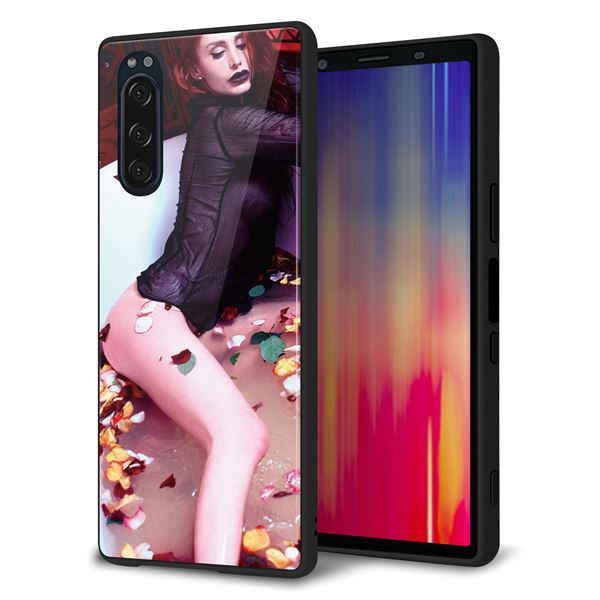 softbank エクスペリア5 901SO 強化ガラス&TPUスマホケース ガラプリ【KM885 バラ風呂】