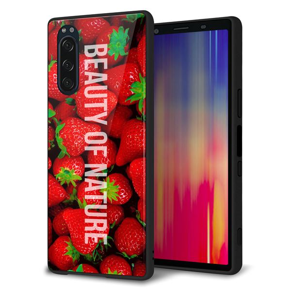 softbank エクスペリア5 901SO 強化ガラス&TPUスマホケース ガラプリ【MA881 ストロベリー】