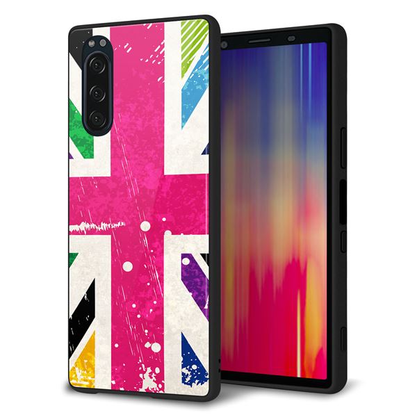 softbank エクスペリア5 901SO 強化ガラス&TPUスマホケース ガラプリ【SC806 ユニオンジャック ピンクビンテージ】