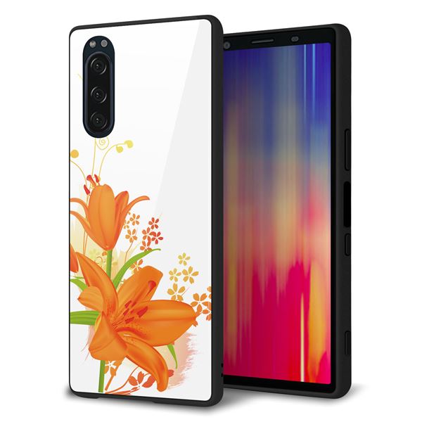 softbank エクスペリア5 901SO 強化ガラス&TPUスマホケース ガラプリ【SC848 ユリ(オレンジ)】