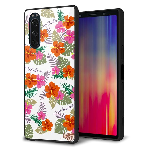 softbank エクスペリア5 901SO 強化ガラス&TPUスマホケース ガラプリ【SC884 ハワイアンアロハレトロ(ホワイト)】