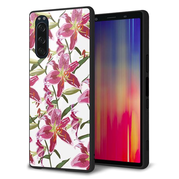 softbank エクスペリア5 901SO 強化ガラス&TPUスマホケース ガラプリ【SC892 ボタニカル スカーレットリリー】