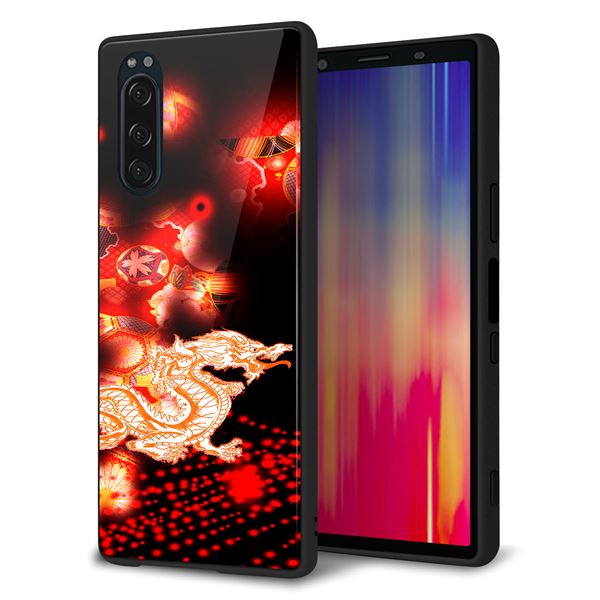 softbank エクスペリア5 901SO 強化ガラス&TPUスマホケース ガラプリ【YC909 赤竜02】