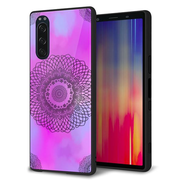 softbank エクスペリア5 901SO 強化ガラス&TPUスマホケース ガラプリ【YJ344 レース】