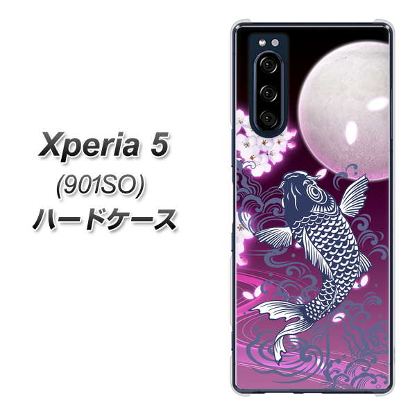 softbank エクスペリア5 901SO 高画質仕上げ 背面印刷 ハードケース【1029 月と鯉(紫)】