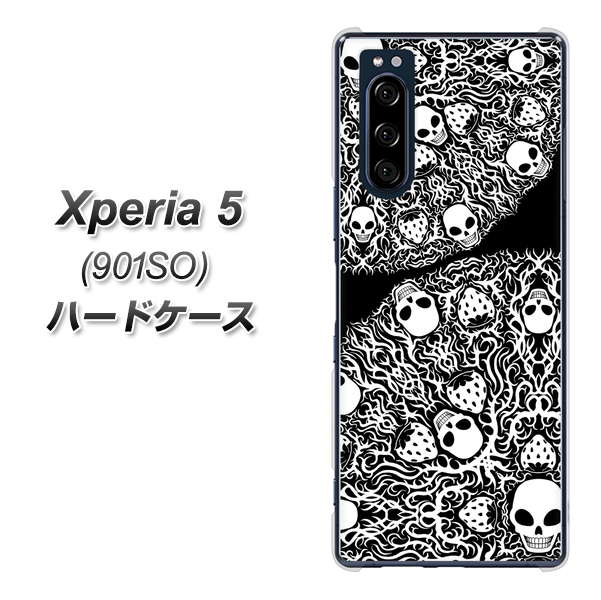 softbank エクスペリア5 901SO 高画質仕上げ 背面印刷 ハードケース【AG834 苺骸骨曼荼羅(黒)】