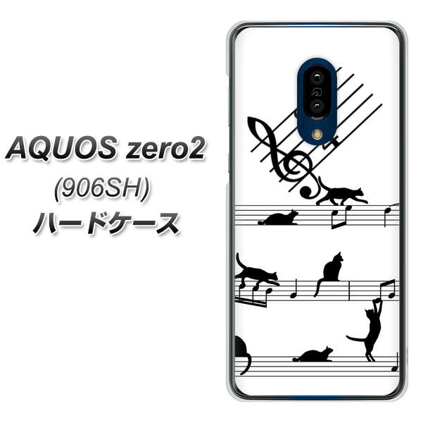 SoftBank アクオスゼロ2 906SH 高画質仕上げ 背面印刷 ハードケース【1112 音符とじゃれるネコ2】