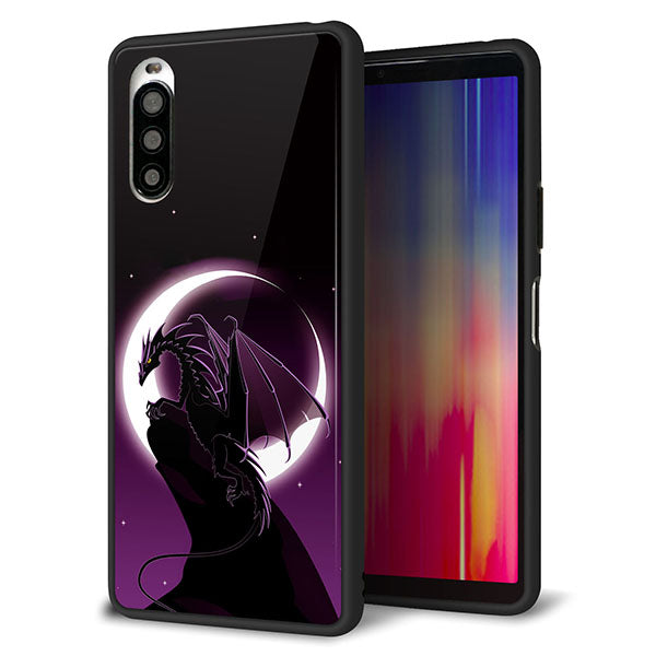 Y!mobile エクスペリア10 II A001SO 強化ガラス&TPUスマホケース ガラプリ【037 三日月とドラゴン】