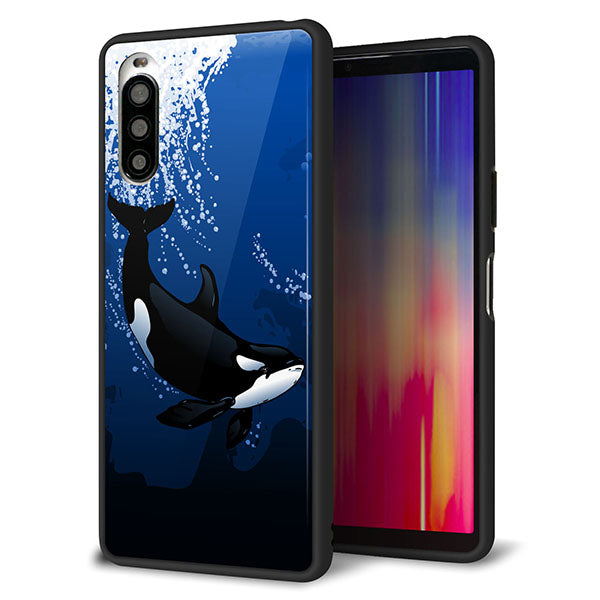 Y!mobile エクスペリア10 II A001SO 強化ガラス&TPUスマホケース ガラプリ【423 シャチ】