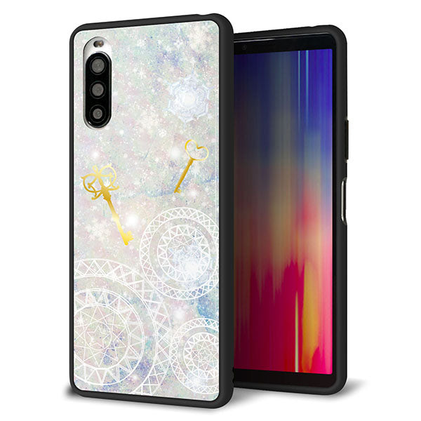 Y!mobile エクスペリア10 II A001SO 強化ガラス&TPUスマホケース ガラプリ【KM881 魔法陣と鍵】