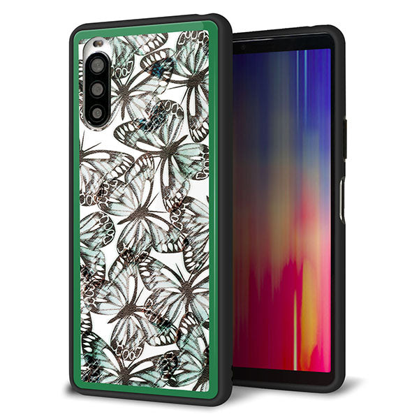 Y!mobile エクスペリア10 II A001SO 強化ガラス&TPUスマホケース ガラプリ【SC902 ガーデンバタフライ グリーン】