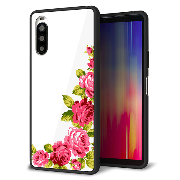 Y!mobile エクスペリア10 II A001SO 強化ガラス&TPUスマホケース ガラプリ【VA825 バラのフレーム(白)】