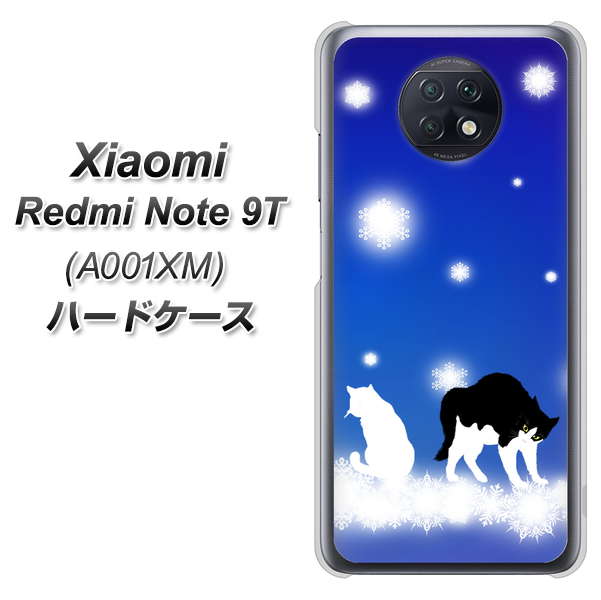 SoftBank Xiaomi(シャオミ)Redmi Note 9T A001XM 高画質仕上げ 背面印刷 ハードケース【YJ335 雪の結晶 はちわれ】