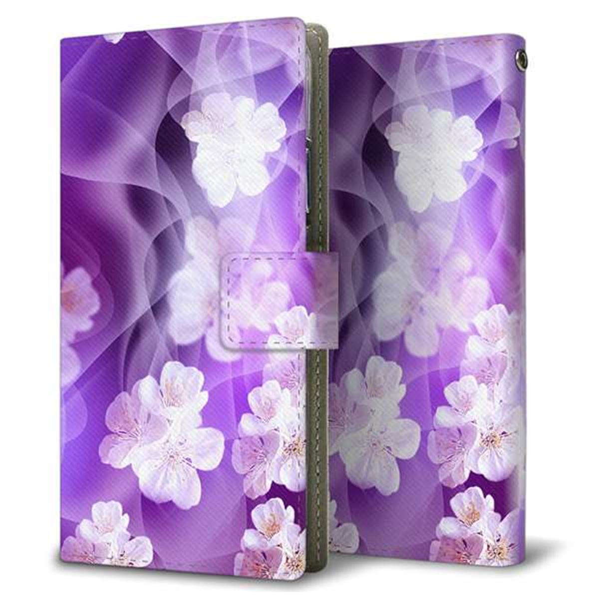 シンプルスマホ6 A201SH SoftBank 画質仕上げ プリント手帳型ケース(薄型スリム)【1211 桜とパープルの風】