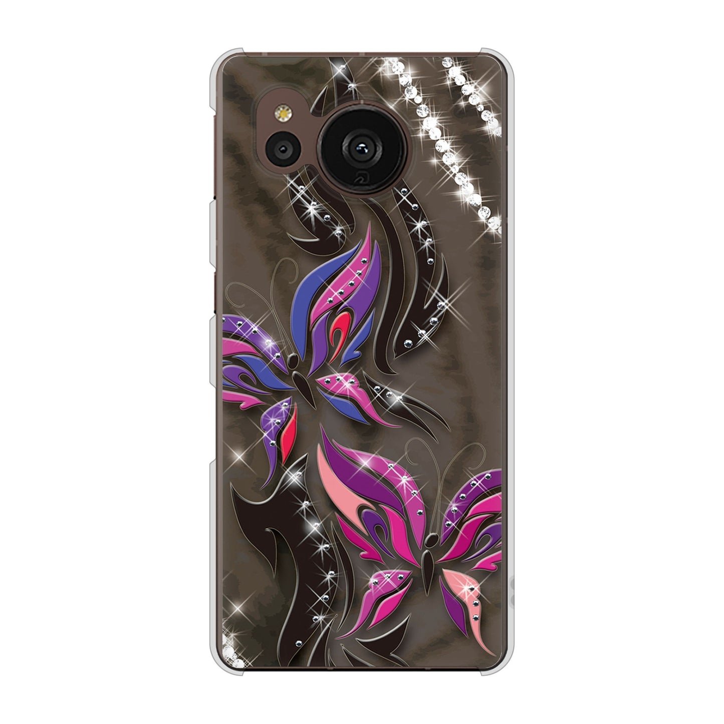 AQUOS sense7 plus A208SH SoftBank 高画質仕上げ 背面印刷 ハードケース 【1164 キラめくストーンと蝶】
