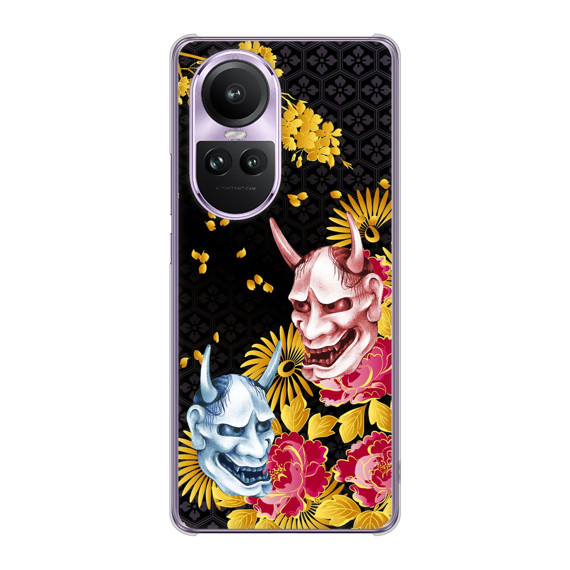 OPPO Reno10 Pro 5G A302OP SoftBank 高画質仕上げ 背面印刷 ハードケース 【1024 般若と牡丹2】