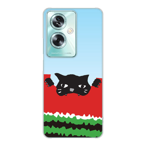 OPPO A79 5G A303OP Y!mobile 高画質仕上げ 背面印刷 ハードケースすいかをかじるネコ