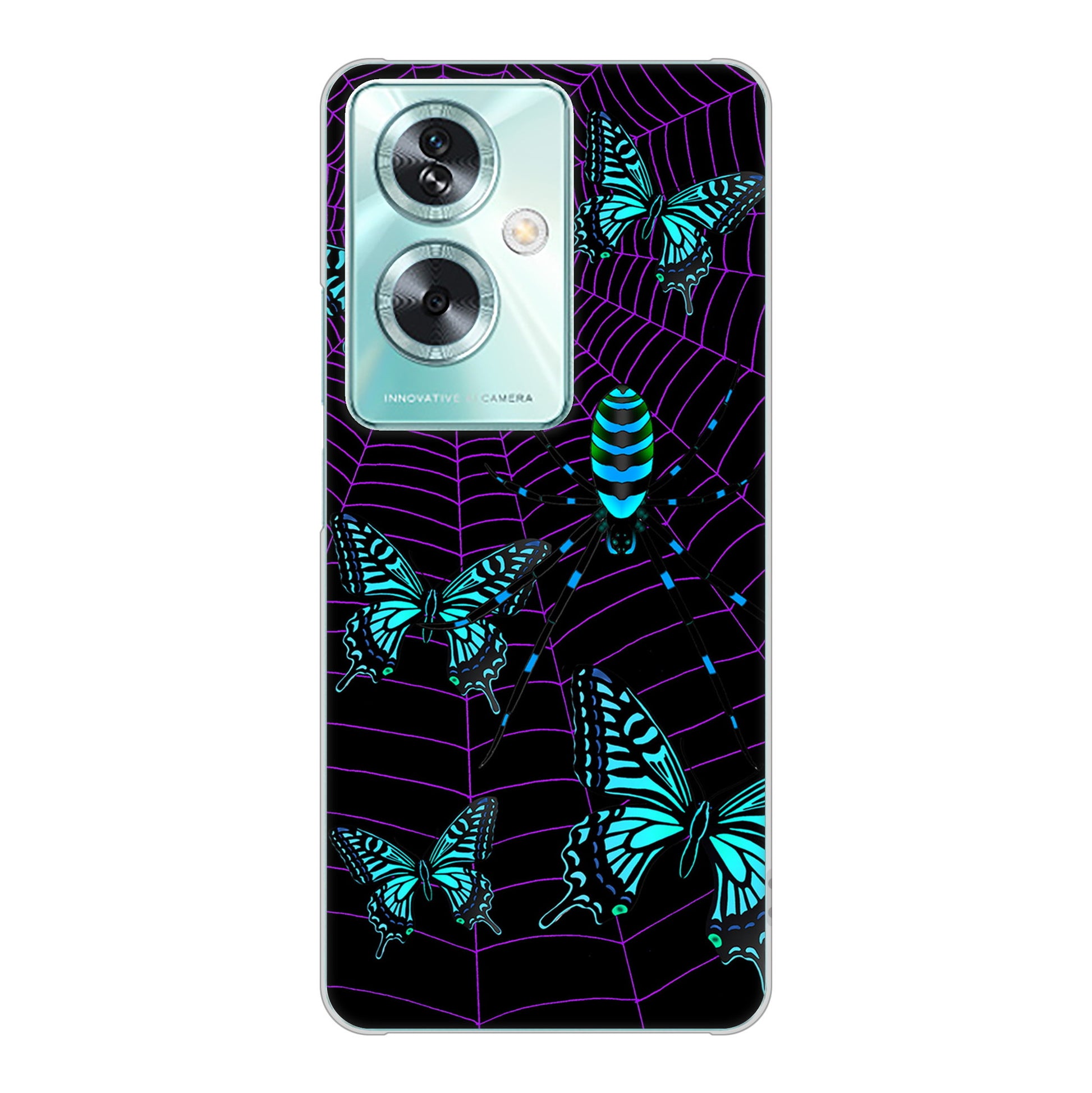 OPPO A79 5G A303OP Y!mobile 高画質仕上げ 背面印刷 ハードケースむかいあぐる 蜘蛛の巣に舞う蝶