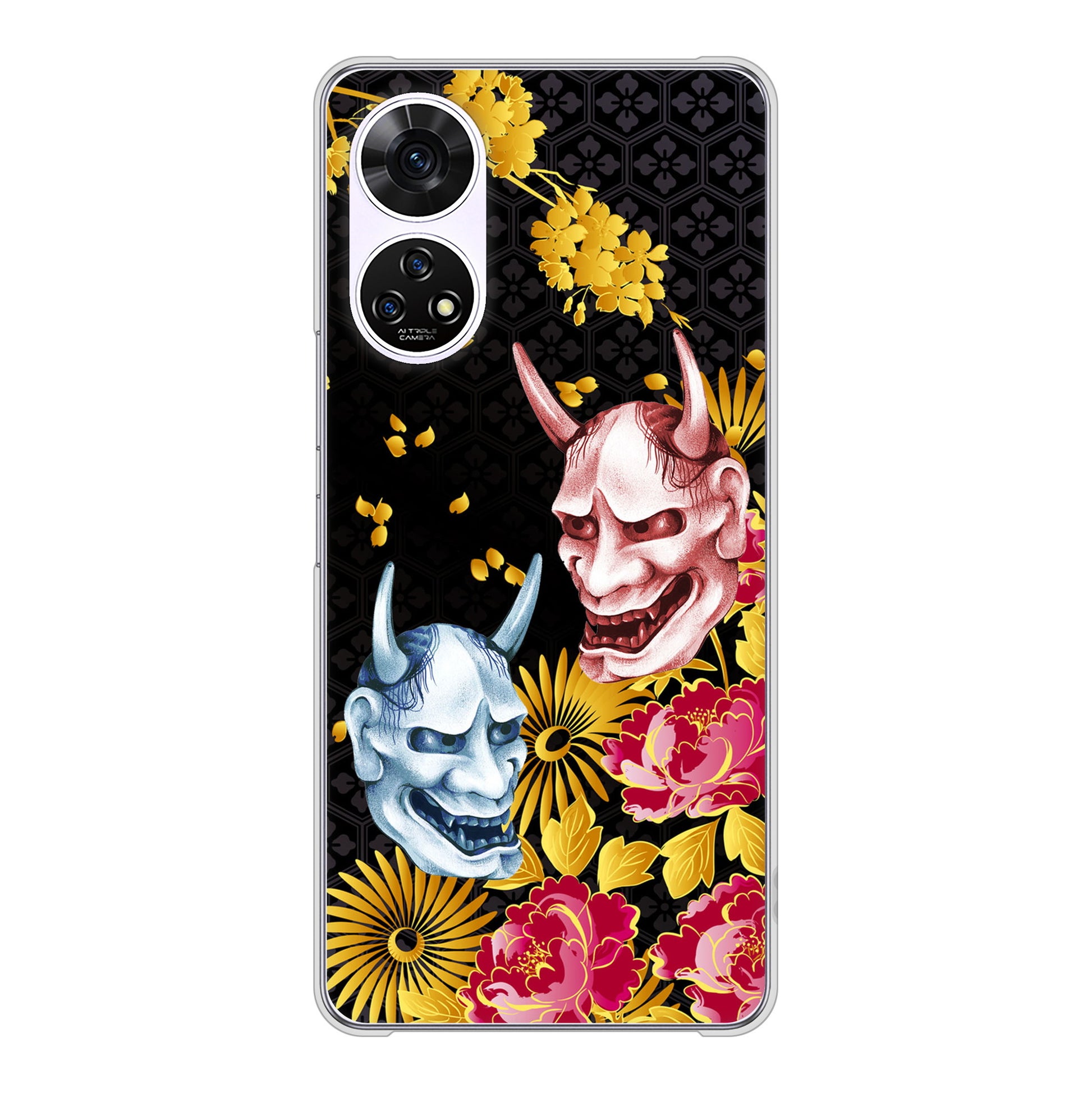 あんしんファミリースマホ A303ZT SoftBank 高画質仕上げ 背面印刷 ハードケース 【1024 般若と牡丹2】
