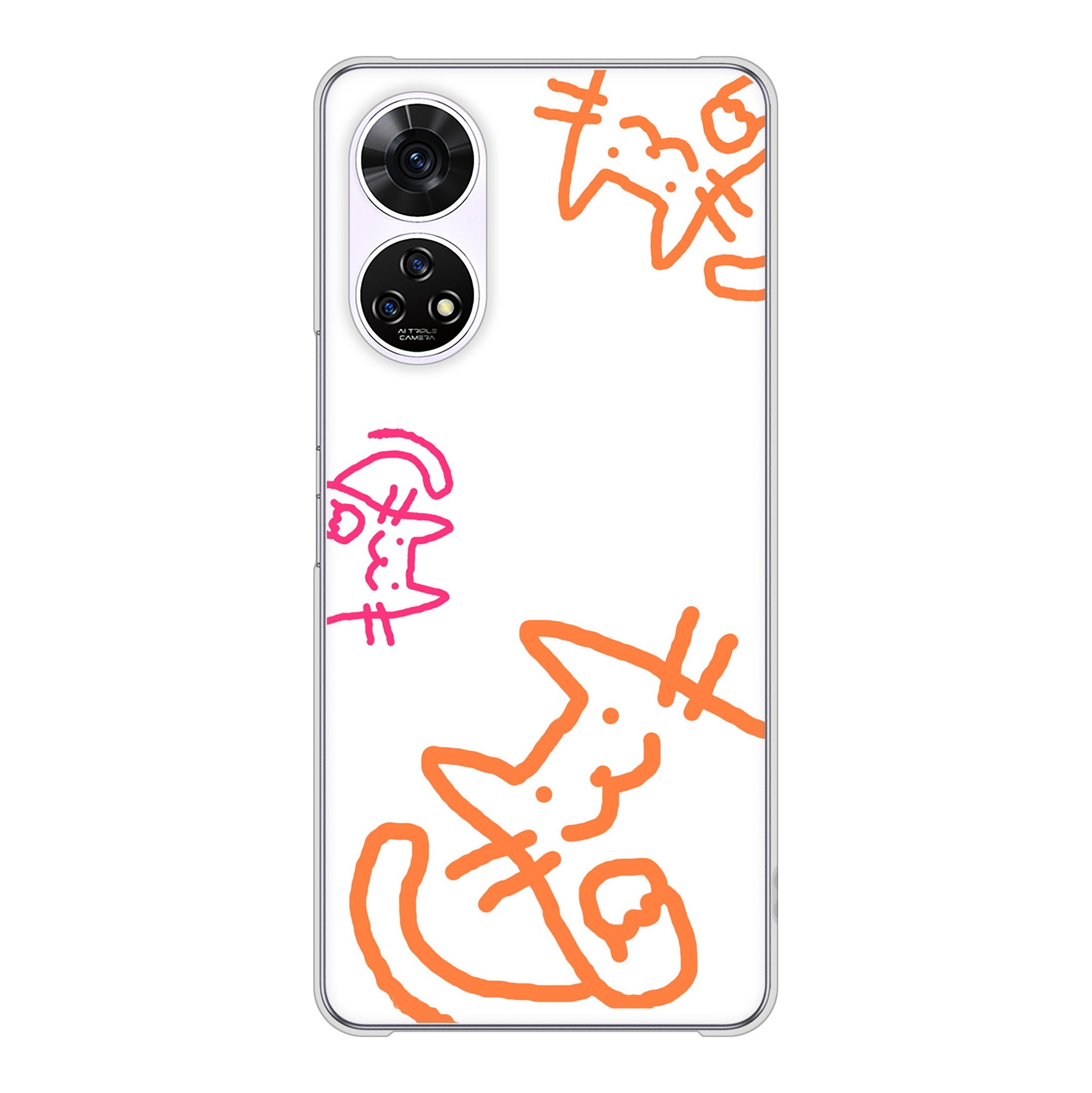 あんしんファミリースマホ A303ZT SoftBank 高画質仕上げ 背面印刷 ハードケース 【1098 手まねきする3匹のネコ】