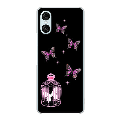 Xperia 10 VI A402SO SoftBank 高画質仕上げ 背面印刷 ハードケースむかいあぐる 蝶の王冠鳥かご