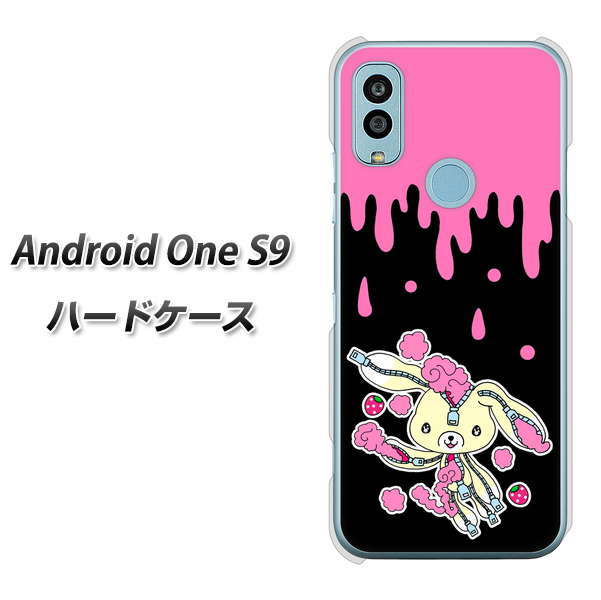 Android One S9 Y!mobile 高画質仕上げ 背面印刷 ハードケース【AG814 ジッパーうさぎのジッピョン(黒×ピンク)】