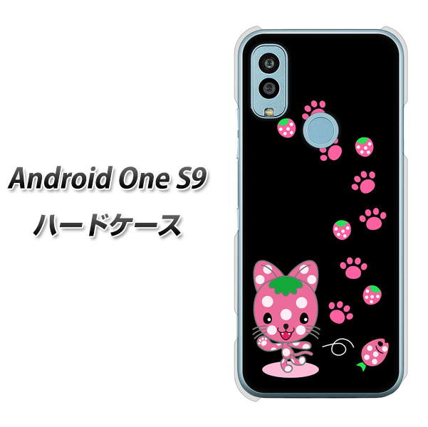 Android One S9 Y!mobile 高画質仕上げ 背面印刷 ハードケース【AG820 イチゴ猫のにゃんベリー(黒)】