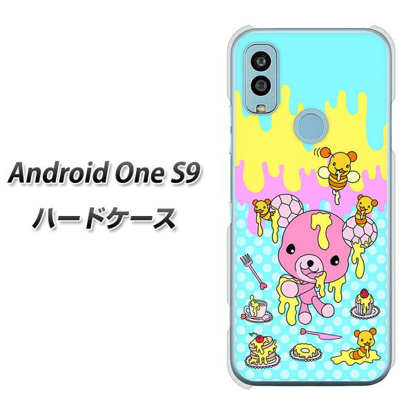 Android One S9 Y!mobile 高画質仕上げ 背面印刷 ハードケース【AG821 ハニベア(水玉水色)】