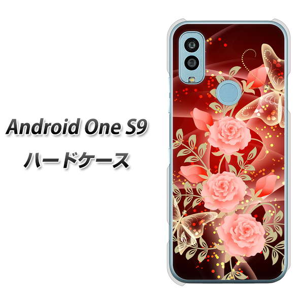 Android One S9 Y!mobile 高画質仕上げ 背面印刷 ハードケース【VA824 魅惑の蝶とピンクのバラ】