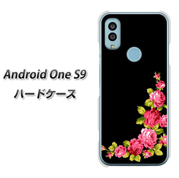 Android One S9 Y!mobile 高画質仕上げ 背面印刷 ハードケース【VA826 バラのフレーム(黒)】