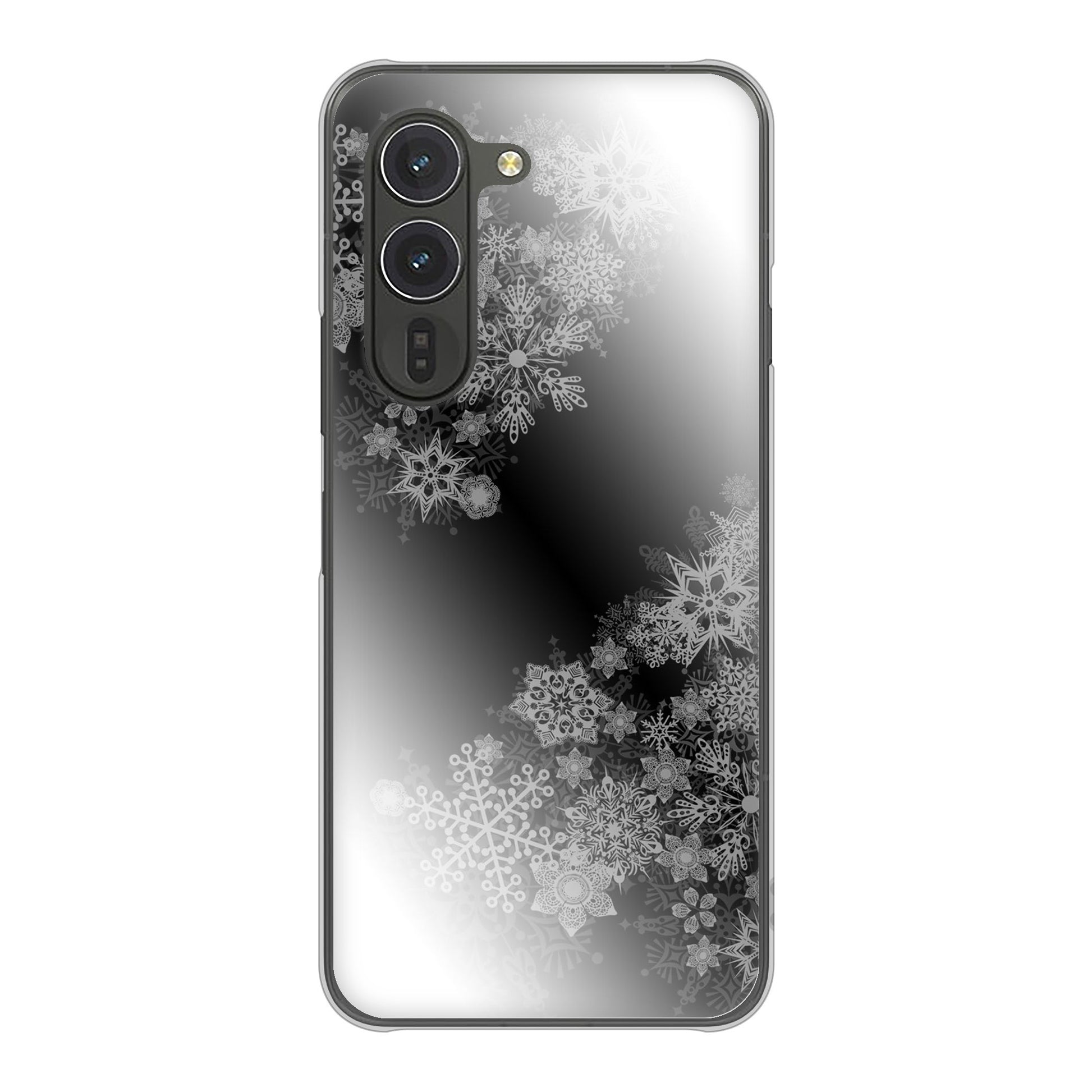 arrows Alpha M08 高画質仕上げ 背面印刷 ハードケース 【YJ340 モノトーン 雪の結晶 】