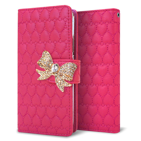 Disney Mobile on docomo DM-01H ハートのキルトデコ 手帳型ケース 耐衝撃