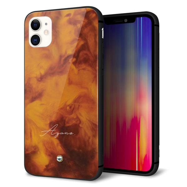名入れ iPhone11 (6.1インチ) スマホケース 強化ガラス 背面ガラス べっ甲風 スワロフスキー