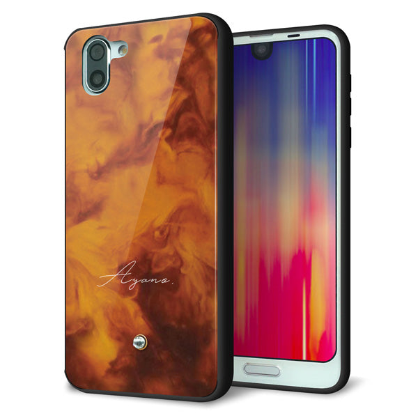 名入れ au アクオス R2 SHV42 スマホケース 強化ガラス 背面ガラス べっ甲風 スワロフスキー