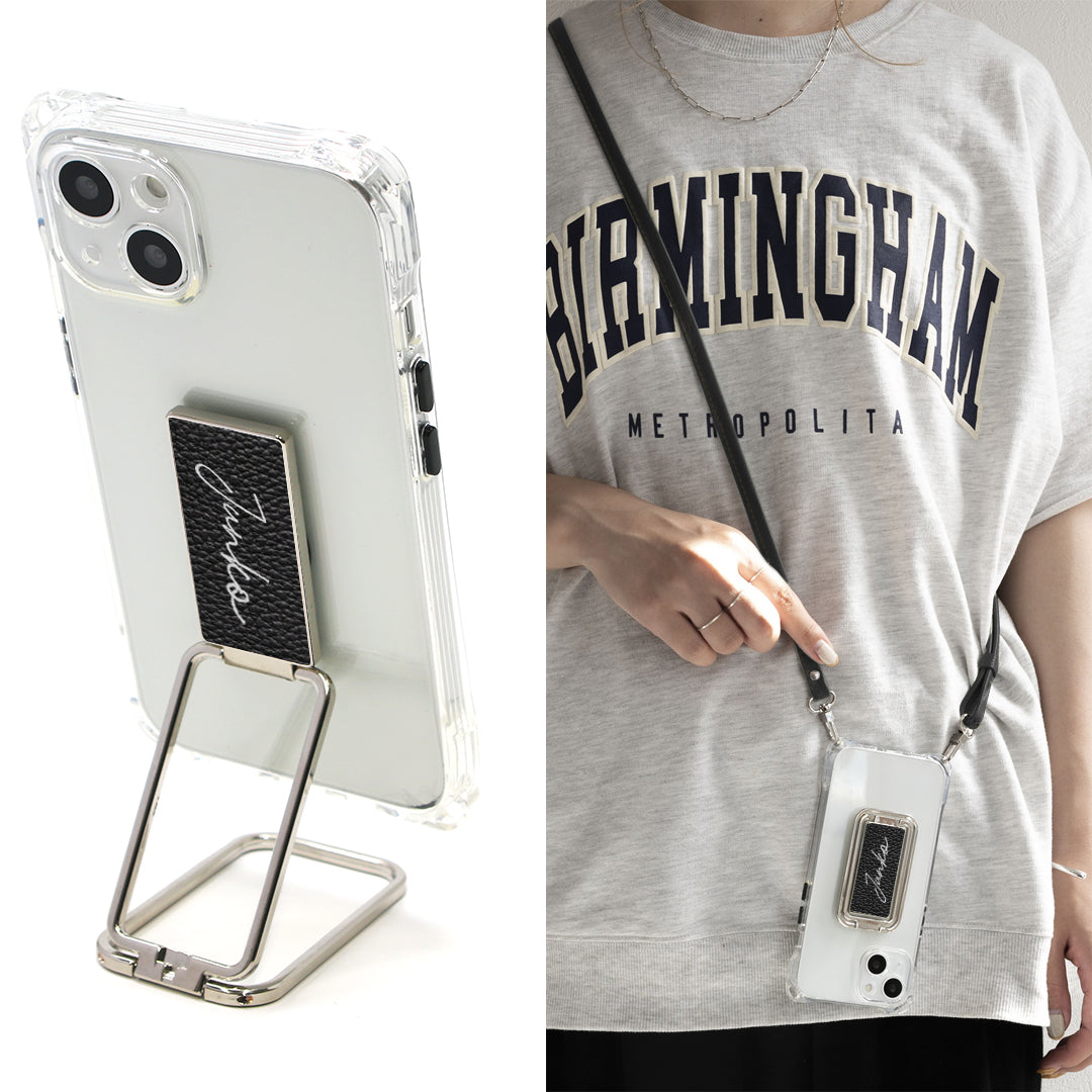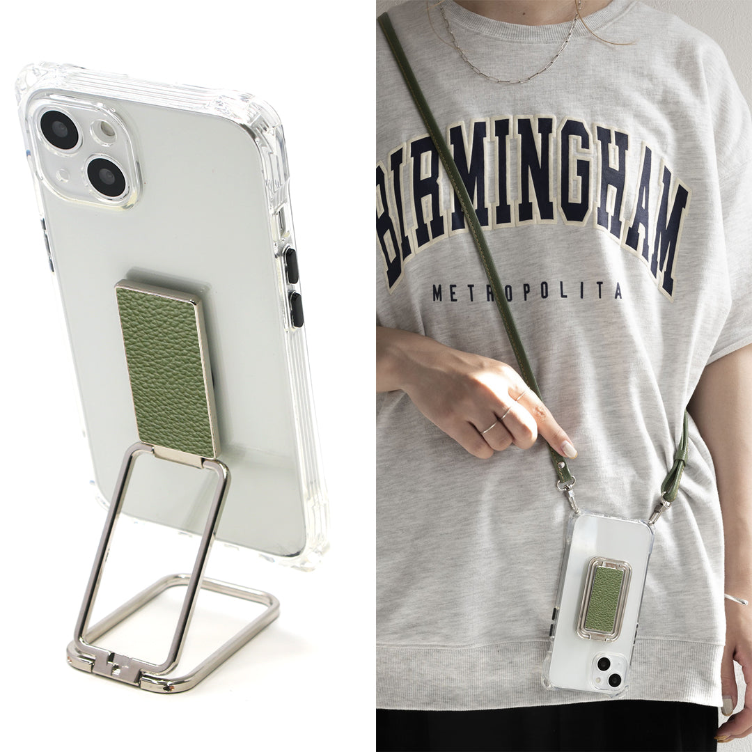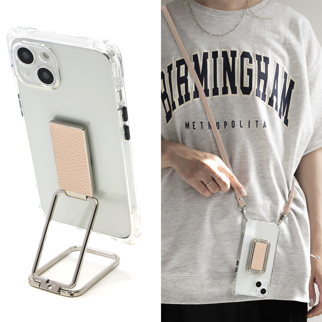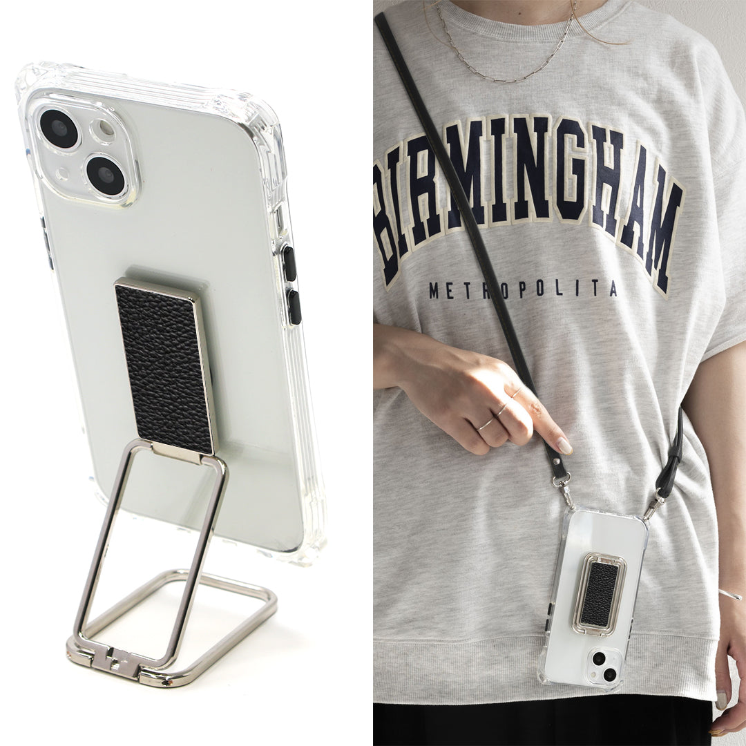 人気の多機能リングにクリアケースとショルダーストラップのセットです。