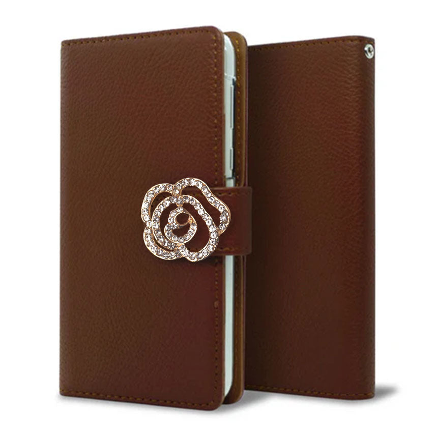 Xperia 5 IV A204SO SoftBank スマホケース 手帳型 Rose&ラインストーンデコバックル 耐衝撃
