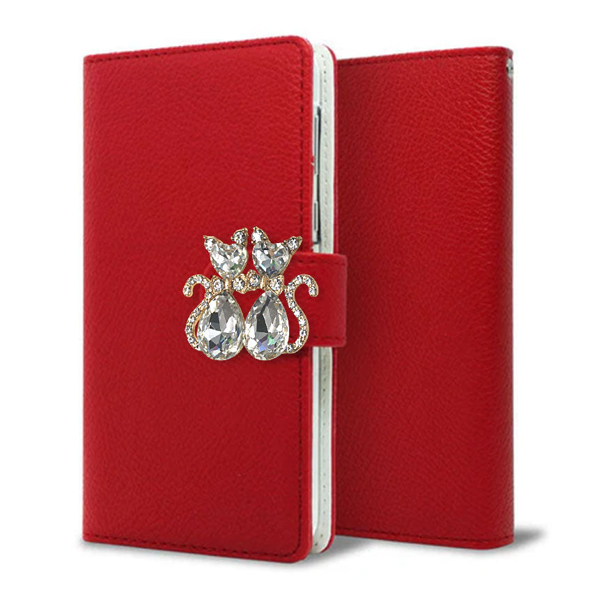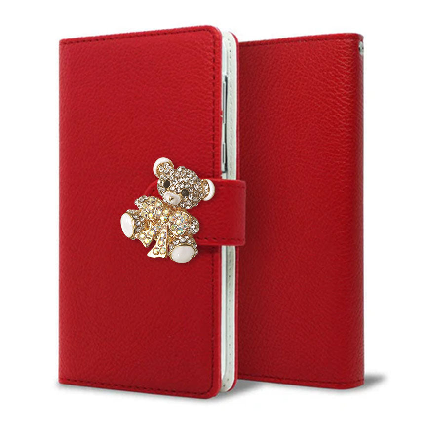 BASIO4 au スマホケース 手帳型 Rose&ラインストーンデコバックル 耐衝撃