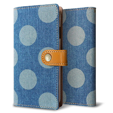 Android One S10 Y!mobile 天然素材の水玉デニム本革仕立て 本革ベルト 手帳型ケース 耐衝撃