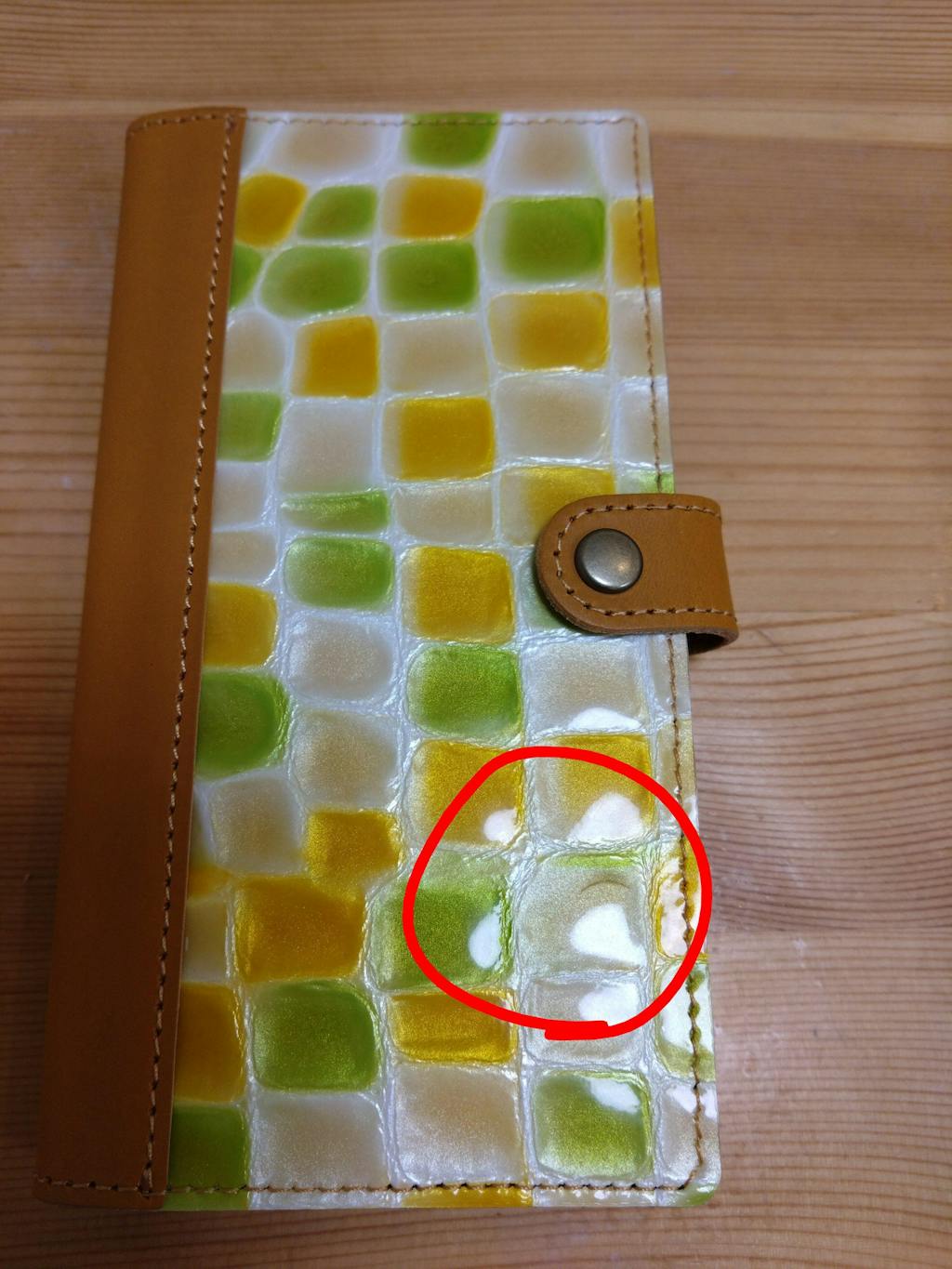 手帳部分:ステンドグラス風レザーとイタリアンレザー