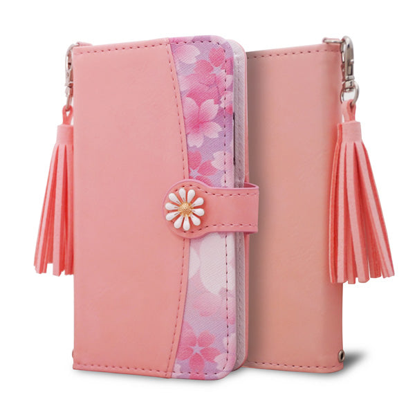 OPPO A5 5G A502OP Y!mobile スマホケース 手帳型 フリンジ風 ストラップ付 フラワーデコ