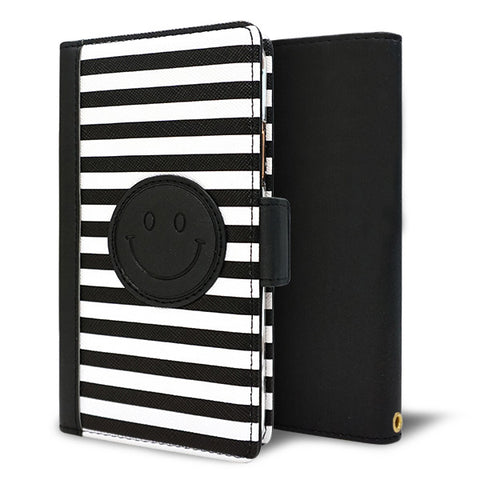 かわいいニコちゃんが表にも内側にも!薄くコンパクトなスマホケースです。