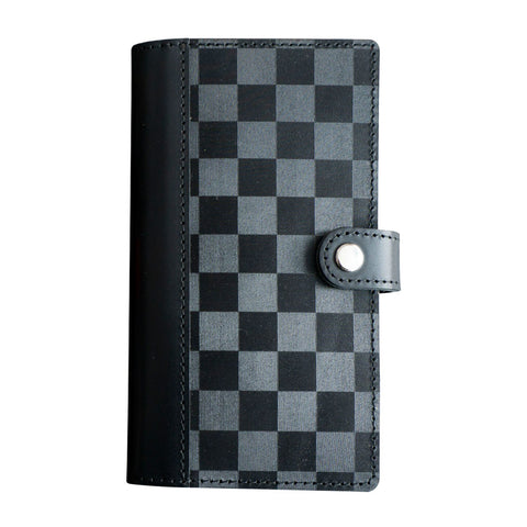 手帳部分:(外側)イタリアンレザー、イタリアンレザーへの市松模様の特殊加工 (内側)ボンデッドレザー