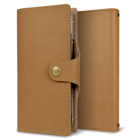 天然シュリンクレザーを使った手帳型のスマホケースです。
