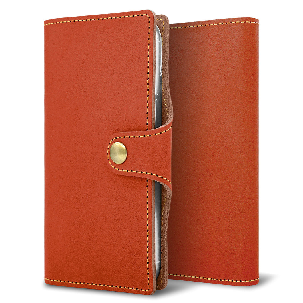 栃木レザーを贅沢に使っています。マグネットボタンで開閉するベルト一体型の手帳型ケースです。