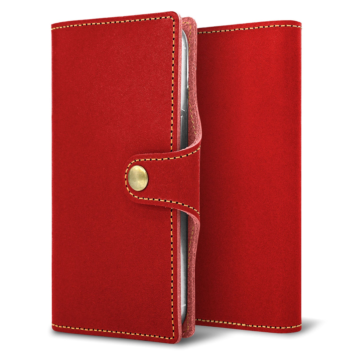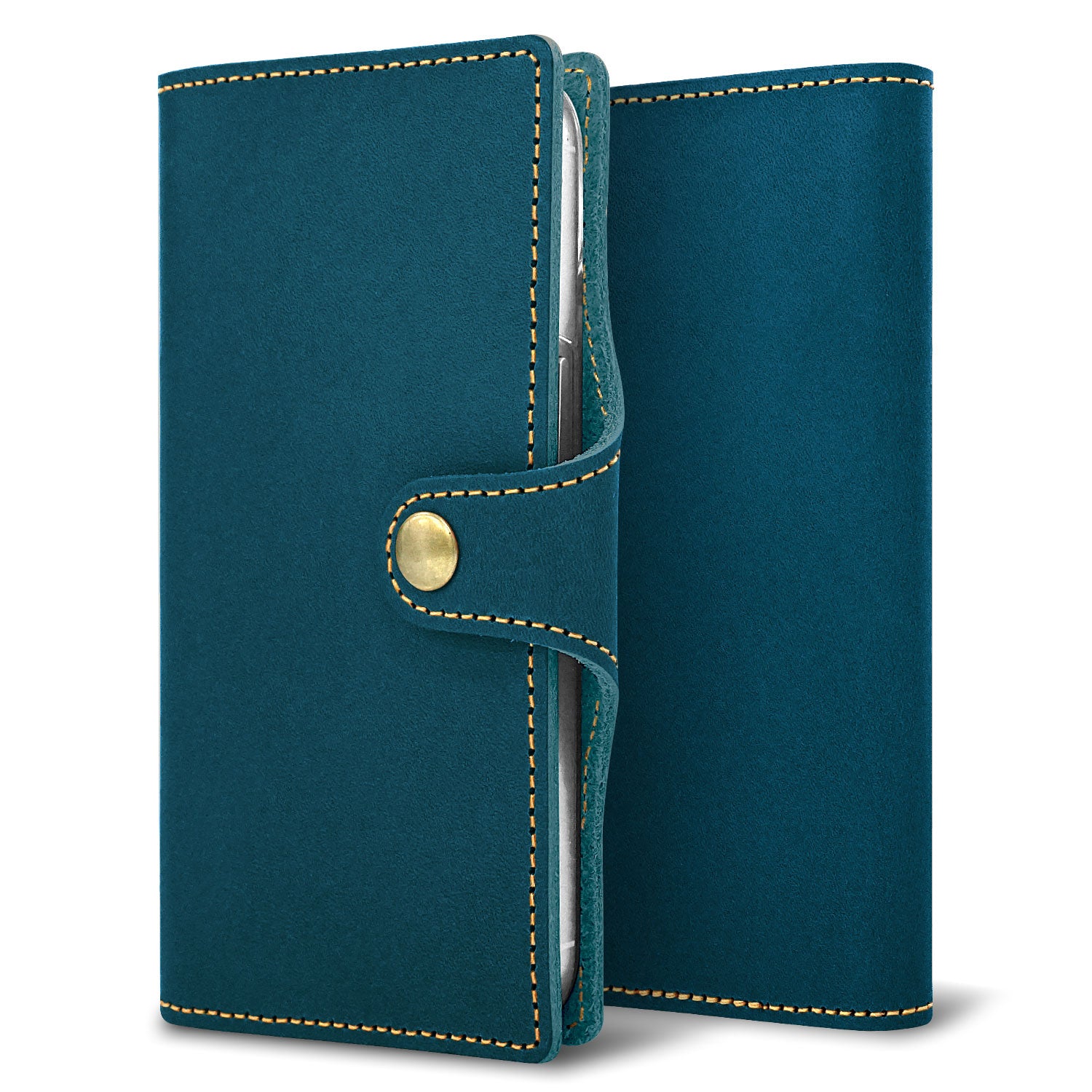 栃木レザーを贅沢に使っています。マグネットボタンで開閉するベルト一体型の手帳型ケースです。